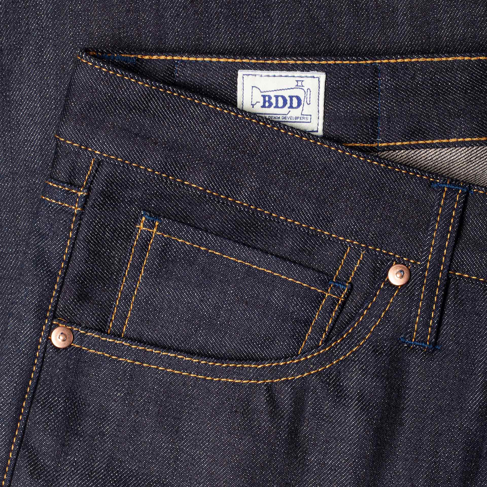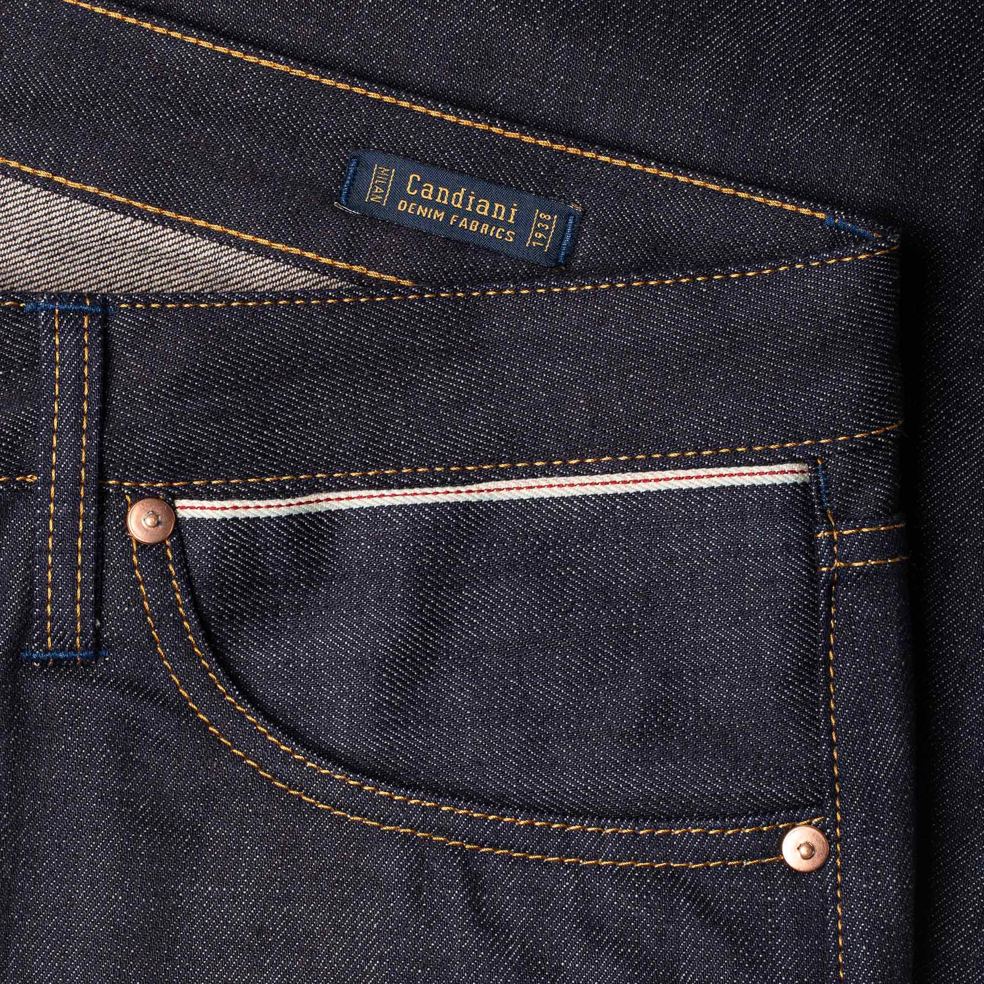 - 13 oz. Italian selvedge denim